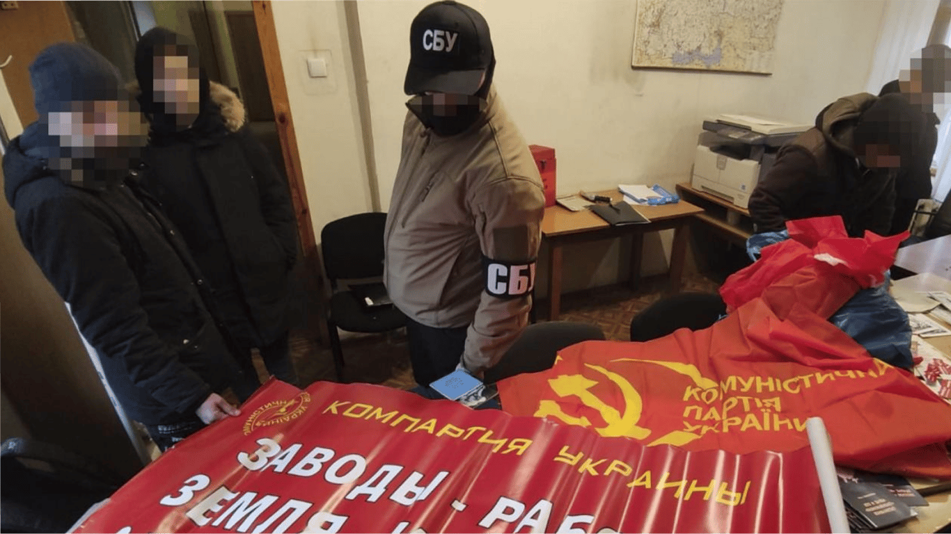 Зазначається, що обшуки провели в офісах та помешканнях представників заборонених "Комуністичної партії" та політичної партії "Русь єдина" у Києві, Дніпрі і Кривому Розі.
