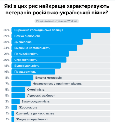 Какова ситуация с трудоустройством ветеранов, исследовал Украинский ветеранский фонд совместно с Work.ua и Lobby X.